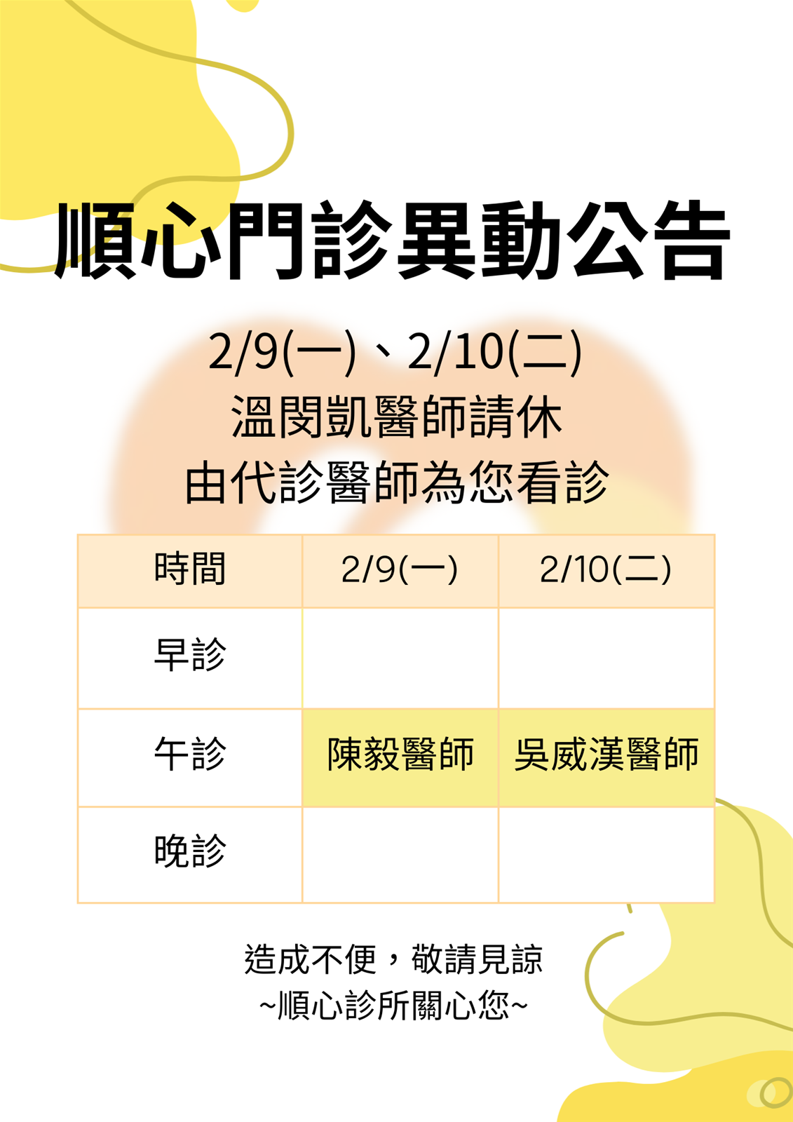 門診異動公告 溫閔凱醫師休假代診