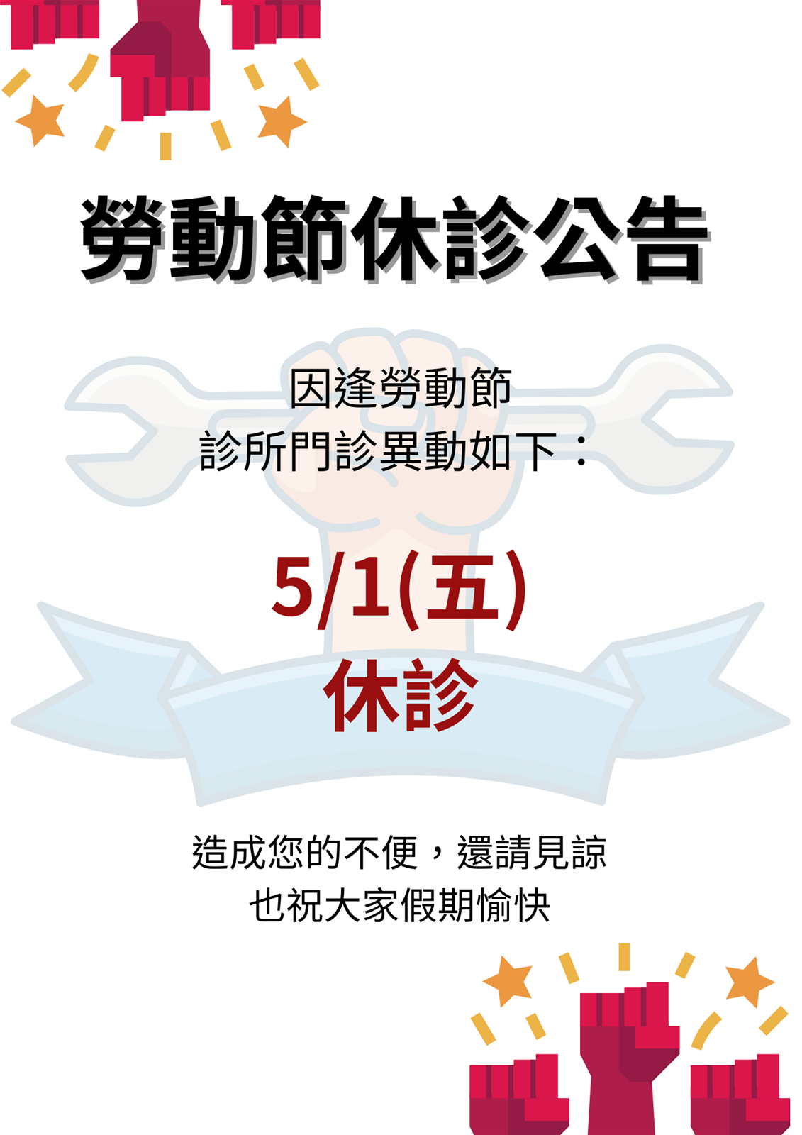 勞動節休診公告