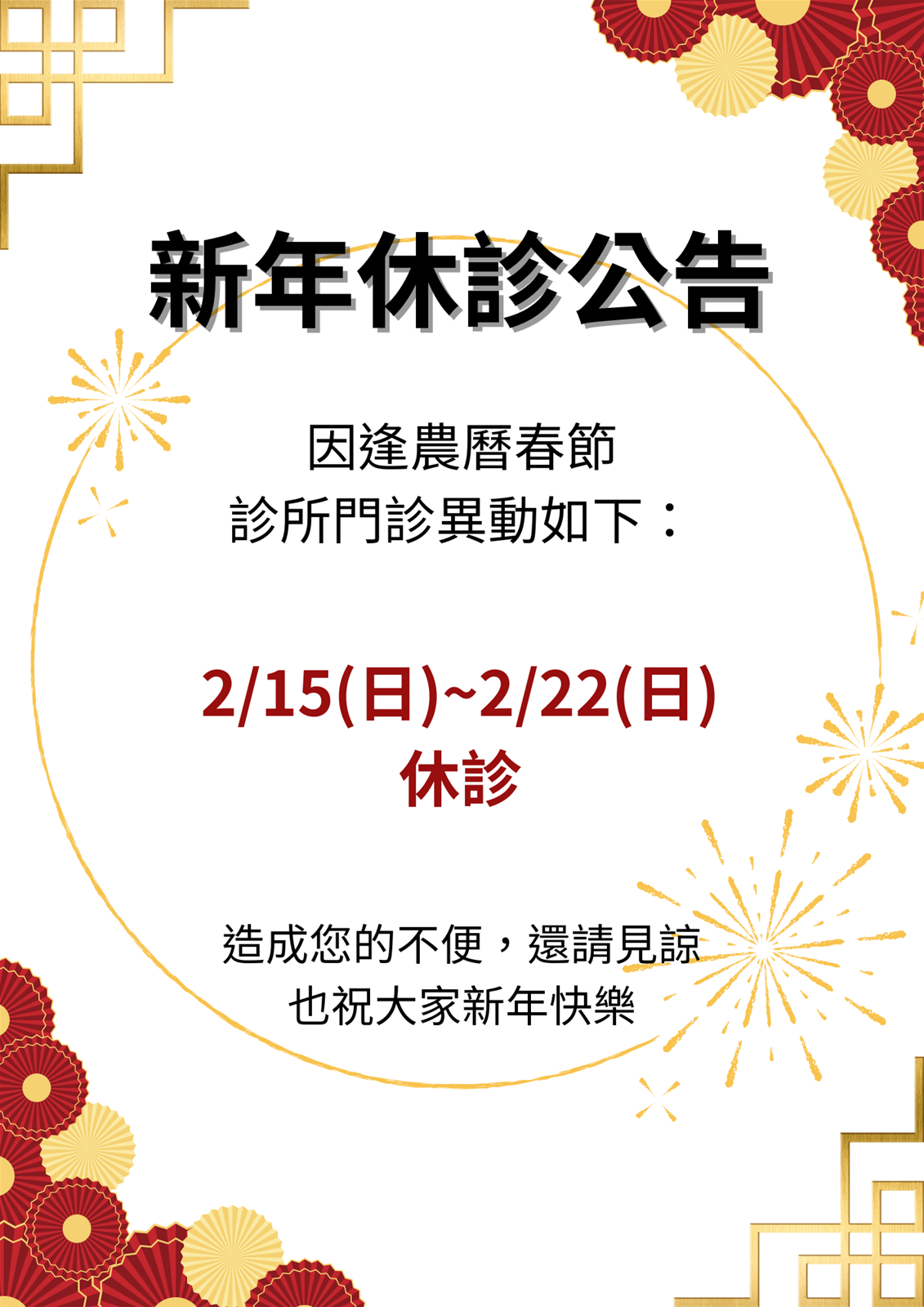 • 115年新年休診公告 2026/02/09
