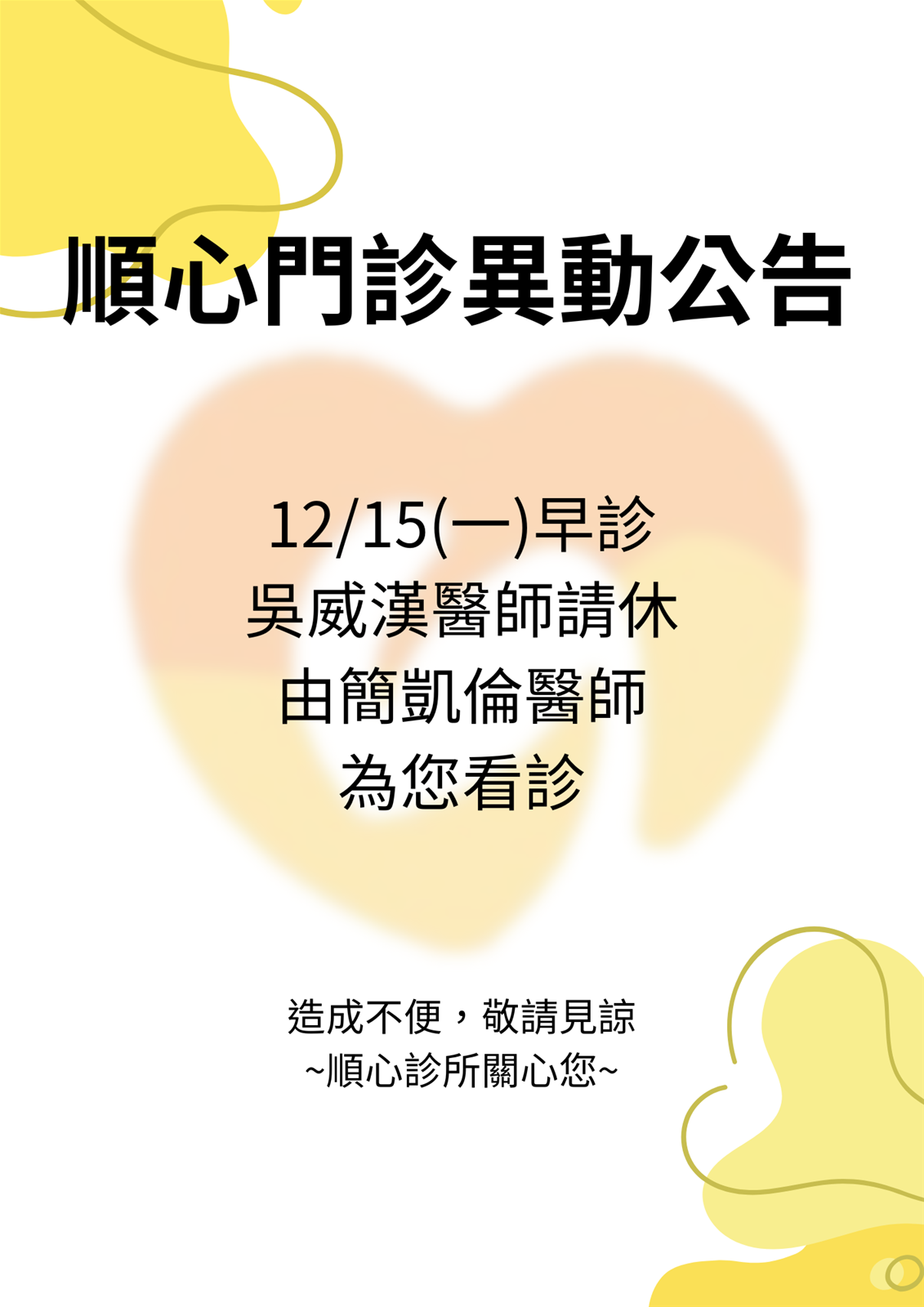 門診異動公告